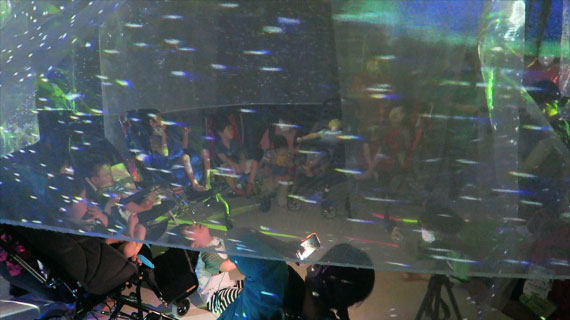 「ゆめ水族園」はファンタスプロジェクション(Fantas Projection)をベースに、映像、音楽、揺れるスクリーンを組み合わせ、やわらかな空間をつくり、視覚、聴覚、触覚などを通じて豊かな感覚刺激体験をお届けします。