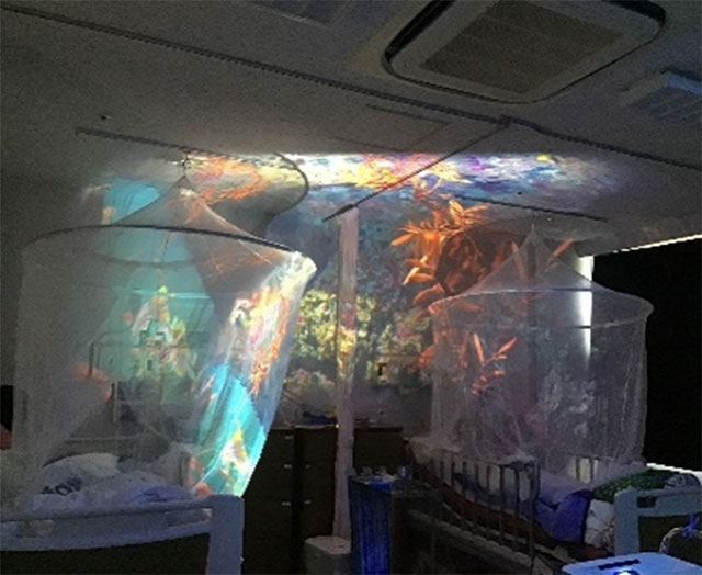 “コロナ禍”により、患者様の日中活動が大きく制約される中、「ファンタスカー」をお借りする事ができ、感染対策に注意しながら活用させていただきました。映像を近くで見られるよう様々な工夫をして取り組みました。事前に教えていただいた寒冷紗等も積極的に利用しました。普段は映像に興味をしめされない患者さまがジッと見つめられたりと、患者さまお一人お一人の受け止め方で楽しまれました。今回得た知見をぜひ、今後の活動に活かしたいと思います。