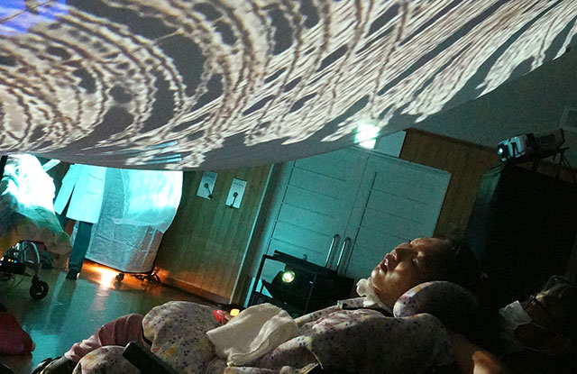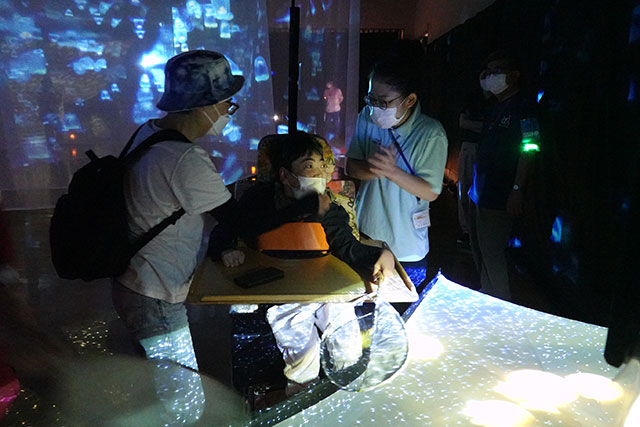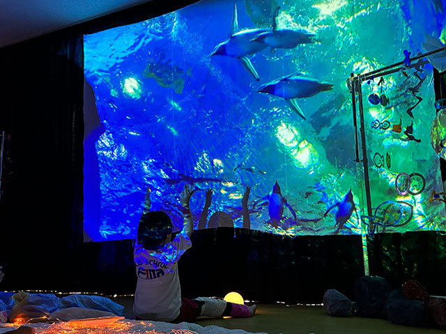壮大な光と音に包まれた空間の中で、目を輝かせて周囲を見回したり、優しく揺れる布に手を伸ばしたり、『たのしいね』とご家族と顔を見合わせる姿など、心に残る素敵な場面を数多く見ることができました。