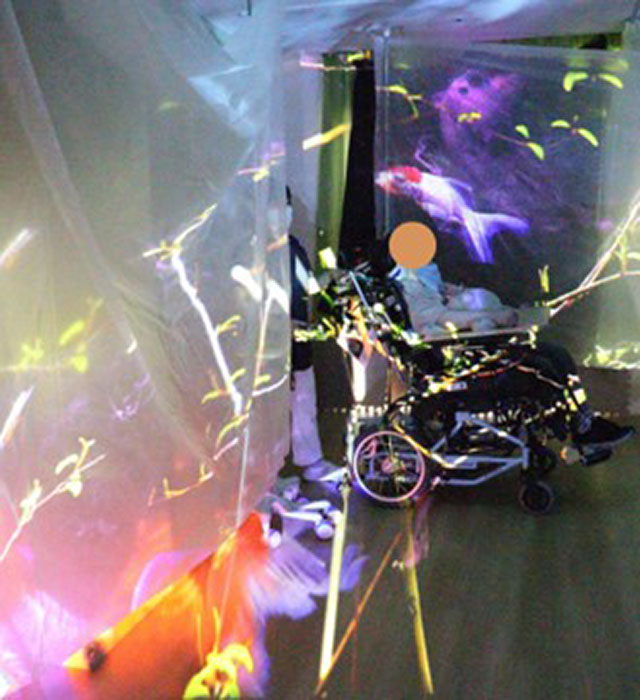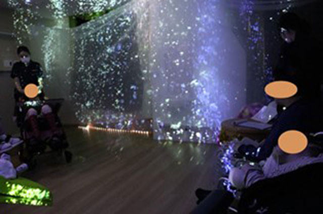 利用者の追視や身体反応を促すだけでなく、落ち着きのない方の笑顔を引き出すなど高いセラピー効果が見られました。