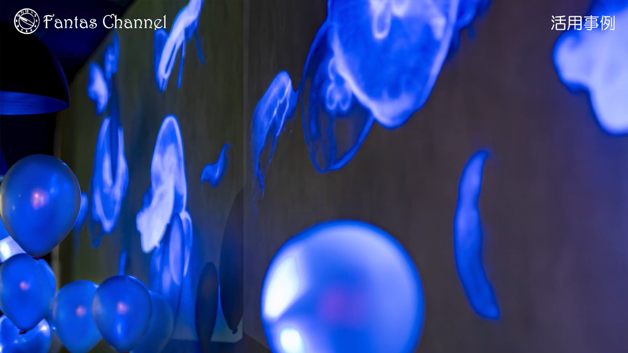エプソンが社会貢献活動「ゆめ水族園」として、病院や支援学校にお届けしてきた映像です。レースのようなスクリーンや、薄いカーテンなどを使った空間づくりを工夫して、皆さまならではの感覚刺激体験を楽しんでください。