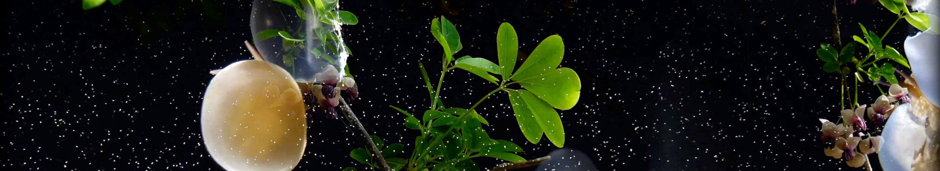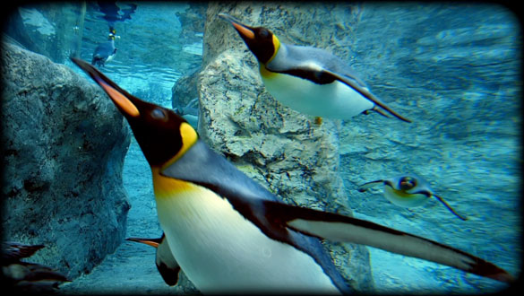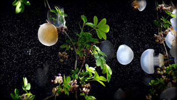 速い動きは見ることが難しいです。ペンギンが代表です。プロジェクションのように映像を拡大していると、なおさら速い動きは見にくいのです。そこで全体の映像をクラゲくらいのゆっくりしたスピードに調整しています。