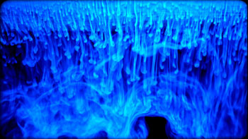 変化の少ない環境にいる方々に、自然の揺らぎを作りそれを視覚を通じで感じてほしいと考えています。これは、すべての映像の基本になっています。具体的には下の図にあるようにクラゲや植物やプランクトンの動き、水流など自然界のゆっくりした流れや揺らぎのある要素を取り入れています。下にある青い映像は、見ることのできない水の流れそのものを視覚化した映像です。そこには自然が作り出す美しさがありますね。