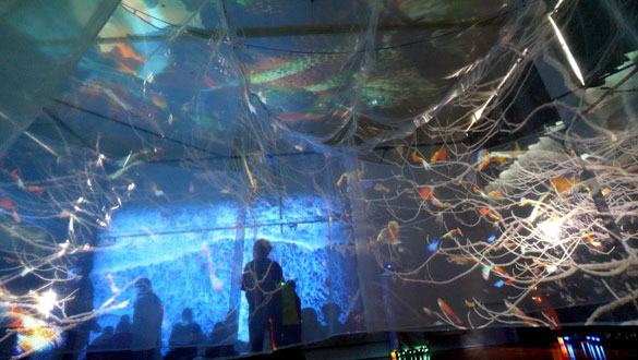 これは、映画のように物語を理解しなくても、「直感的にわかる」ということです。ゆめ水族園は理解するものではなく、感じる世界です。そして体験する方の表現を生み出すのです。言葉のような概念的な世界ではなく対象の色と動きから体験者の表現の創造性を膨らませてもらおうとします。そして環境に変化を生み出す映像です。映画は本になりますが、ゆめ水族園は本に置き換わりません。その空間の質感、刺激そのものが本質だからです。