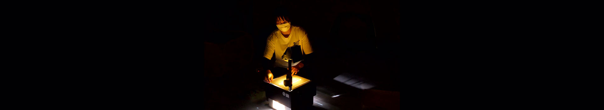 ファンタジーの素材は、先生方が作った手製の切り絵、色はセロハン。OHPを使い、その映像と一緒に語りや歌を歌ったり、落ち葉をその場で落としたり、多様な要素で展開されるため、その人に合わせた柔軟な方法を取ることができます。そして実際行う点で大切なポイントは、映像を投影している間の「余韻、間の時間」を作ること。それは生徒さんのペースに合わせた「余韻、間の時間」。そして影絵の要素が重なり、そこに生徒さんの想像力を膨らます余裕が生まれます。光も時間もゆったりとした世界です。
