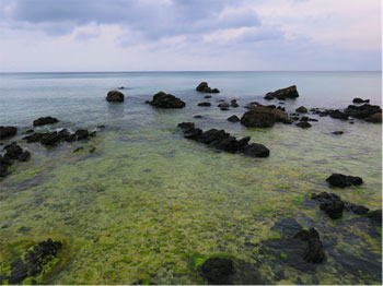 空間そのものは見えません。何かモノや手がかり(視覚、触覚、聴覚)になるコト(音とか)がないと、空間そのものは把握しづらいものです。一例として、海の写真のように岩があると空間感(奥行きなど)がよりわかりやすいですね。