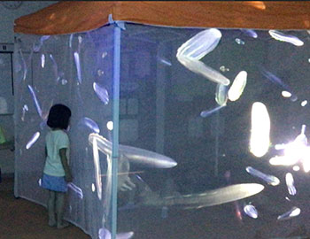 ゆめ水族園が実現したいのは感覚刺激体験です。視覚と聴覚と触覚を中心に感覚と知覚を刺激し、新たな表現を引き出すことがその主な目的です。