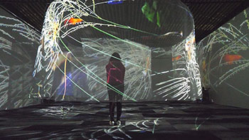 ① 空間に映像を映し出し、体験者の視線を集中させます。