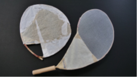 それでは具体的にその作り方について説明していきます。スクリーン面になる素材は、日用品などで作れます。例えば、キッチンの換気扇のフィルターの布とか水切りのメッシュの布、もちろん和紙とかトレーシングペーパーなど光を受け止められれば、ほとんどの素材は使えます。手で扱うものなので軽い素材がいいですね。また、壊れても修復できるありふれた素材がいいと思います。ポイントは、半透過する素材にするのか、画用紙のようにある程度不透過の素材にするかです。