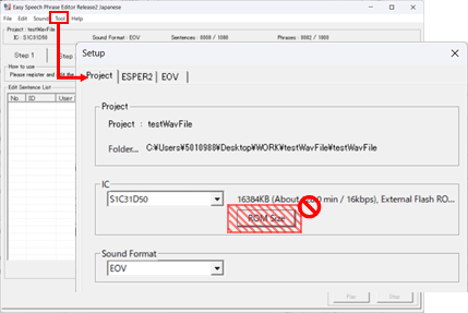 After launching the project, opening Tool -> Setup -> Project, pressing the ROM size button, and changing the ROM size setting.
