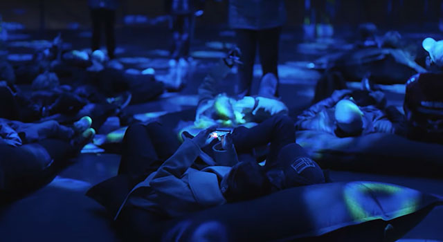 Seven EB-L30000U 30,000-lumen projectors are stacked vertically and seamlessly blended across the incredible 40-meter-high screen, including the use of gauze material to create a "ghost" effect.