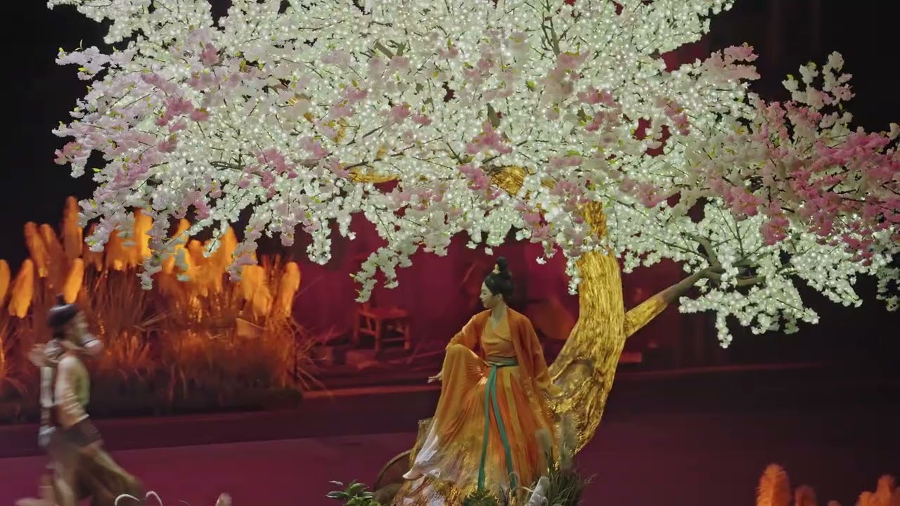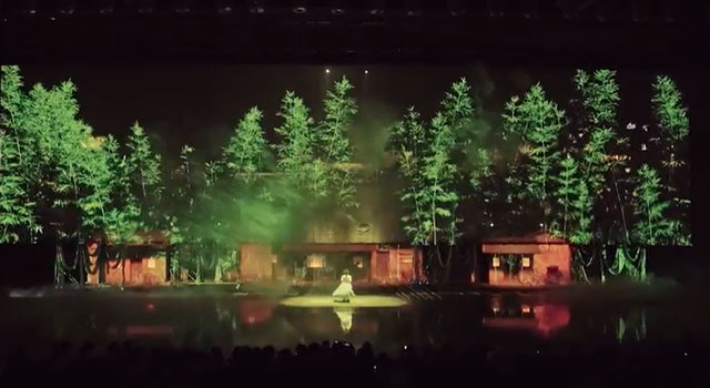 The projection setup includes ground projection, stage backdrop projection, and gauze screen projection, delivering a rich and immersive visual experience across multiple layers of the performance space.
