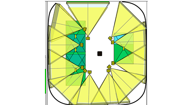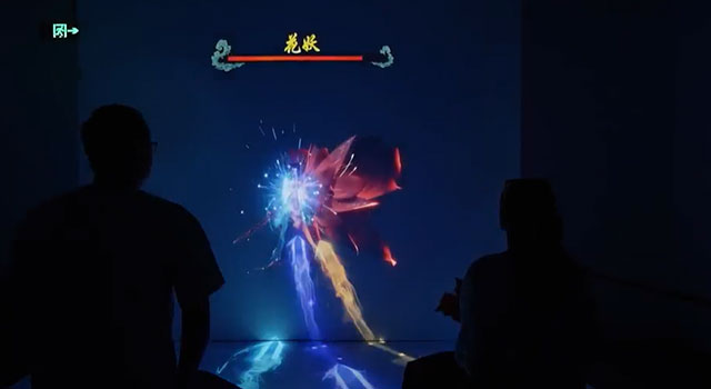 In one interactive space, visitors can engage with the projection content by playing drums; in the other, they can project their own drawings onto the wall.