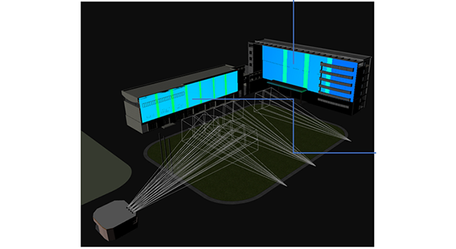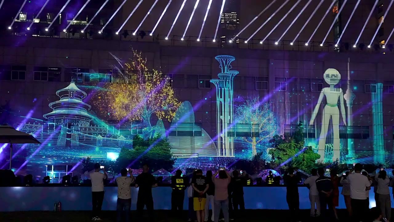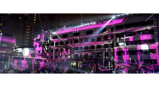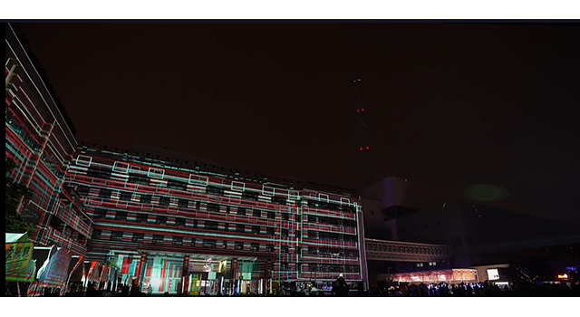 This is an outdoor projection show held at a former industrial site in Chaoyang District, Beijing. A total of 47 CB-PU2220B projectors were used to map the buildings, projecting traditional cultural scenes such as classical pavilions, ancient architecture, Peking opera, and ink wash painting.